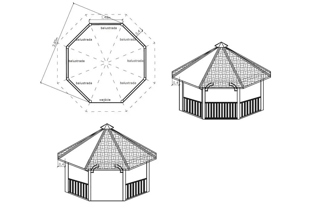 Altana A25 to wyjątkowa konstrukcja, która łączy elegancję z funkcjonalnością, idealna do ogrodów i przestrzeni rekreacyjnych. Jej ośmiokątny kształt o średnicy 3,85m zapewnia optymalną przestrzeń do relaksu, a podstawa o powierzchni 10,48m² pozwala na komfortowe użytkowanie przez całą rodzinę. Dzięki możliwości modyfikacji wymiarów, altana może być dostosowana do indywidualnych potrzeb oraz dostępnej przestrzeni.