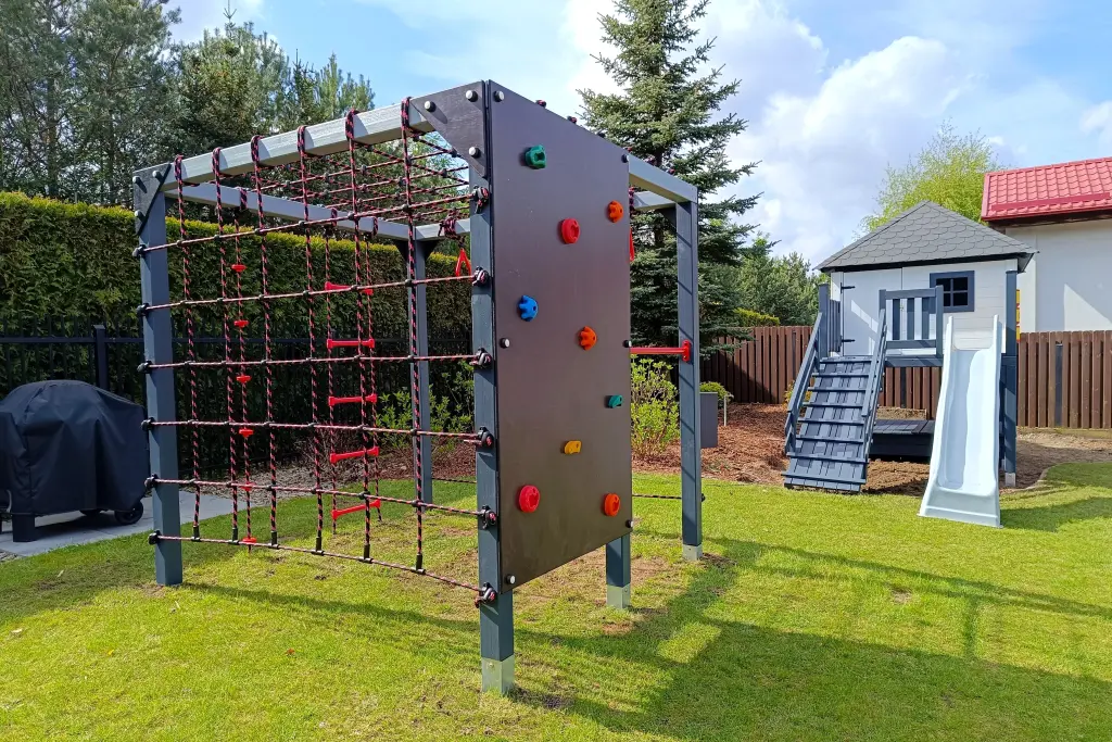 BOX sprawnościowy to wszechstronny zestaw dla dzieci, zaprojektowany z myślą o wspinaczce i podciąganiu na różnych elementach, takich jak siatki linowe, liny wspinaczkowe, ścianka wspinaczkowa, drabinka linowa i metalowe drążki.
