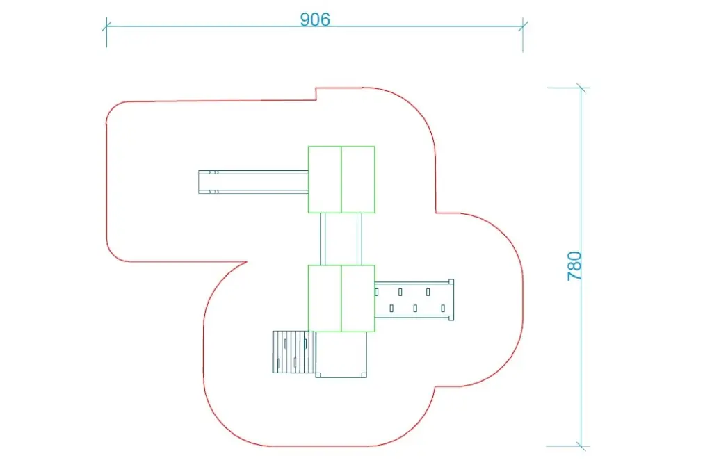 Zestaw K13-1 posiada imponujące wymiary: 5,54 m szerokości, 4,80 m długości oraz 3,29 m wysokości. Strefa bezpieczeństwa o wymiarach 9,06 x 7,80 m oraz maksymalna wysokość swobodnego upadku 1,75 m gwarantują spełnienie najwyższych standardów bezpieczeństwa, zgodnie z normą PN-EN 1176:2017.