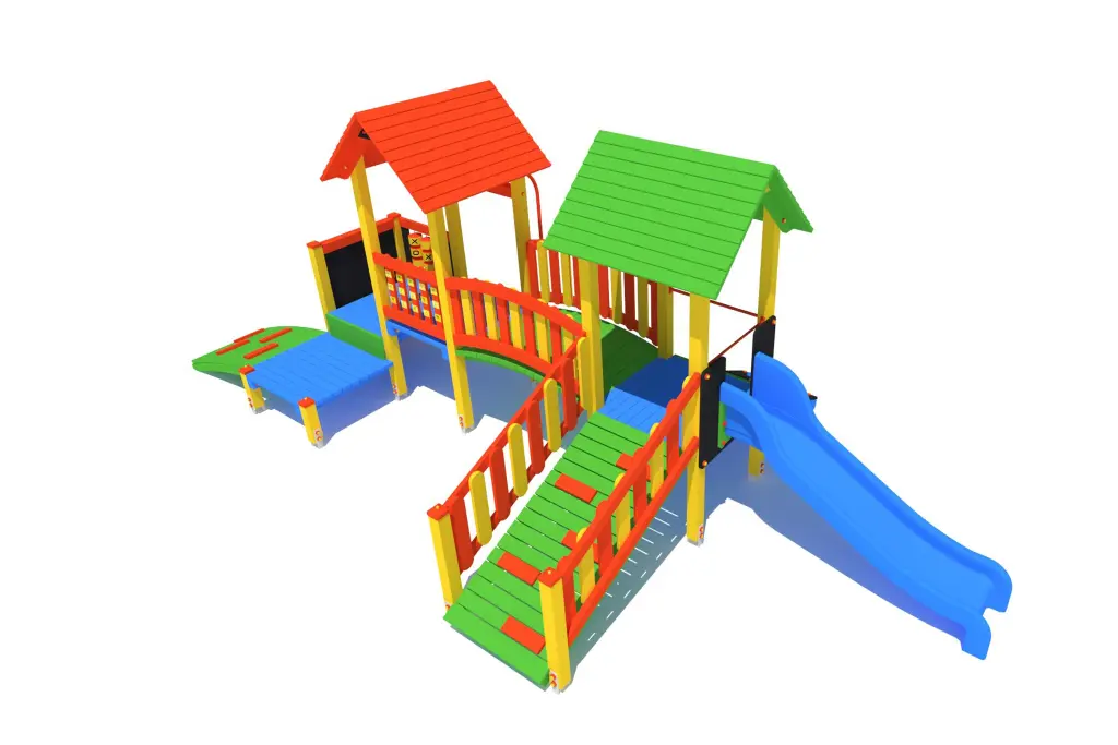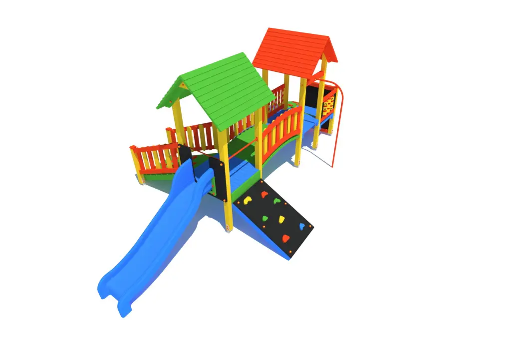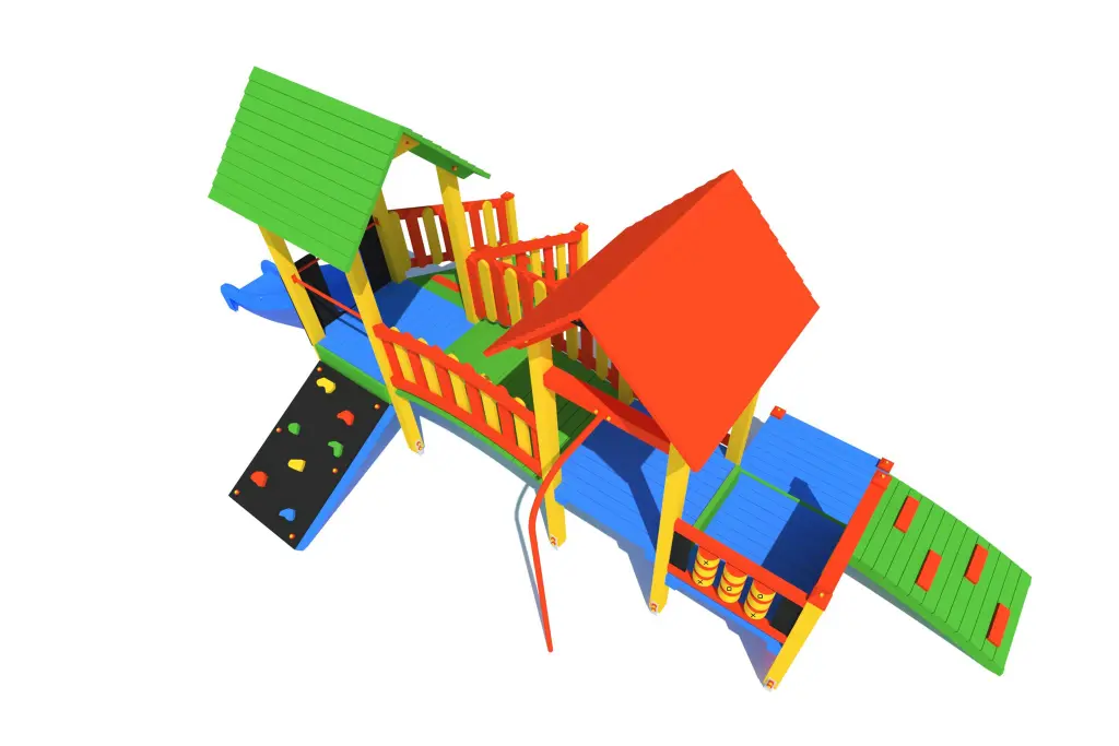 Certyfikowany plac zabaw K23-3 to bogaty w funkcje zestaw zabawowy, który zapewnia różnorodne możliwości zabawy i rozwoju dzieci w każdym miejscu użytkowania.