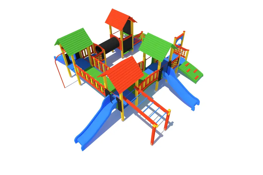 - Ślizgi i zjeżdżalnie — zapewniające dynamiczną zabawę,