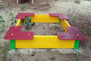 Drewniane elementy placów zabaw zabezpieczane są powłoką lakierniczą na bazie czysto akrylowej z pigmentami odpornymi na światło oraz warunki atmosferyczne, natomiast elementy metalowe zabezpieczamy farbami proszkowymi. Wszystkie farby posiadają testy higieny.