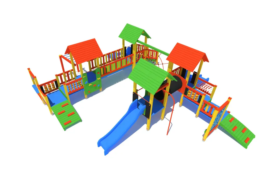 - Wieże zabawowe i platformy o różnych wysokościach,