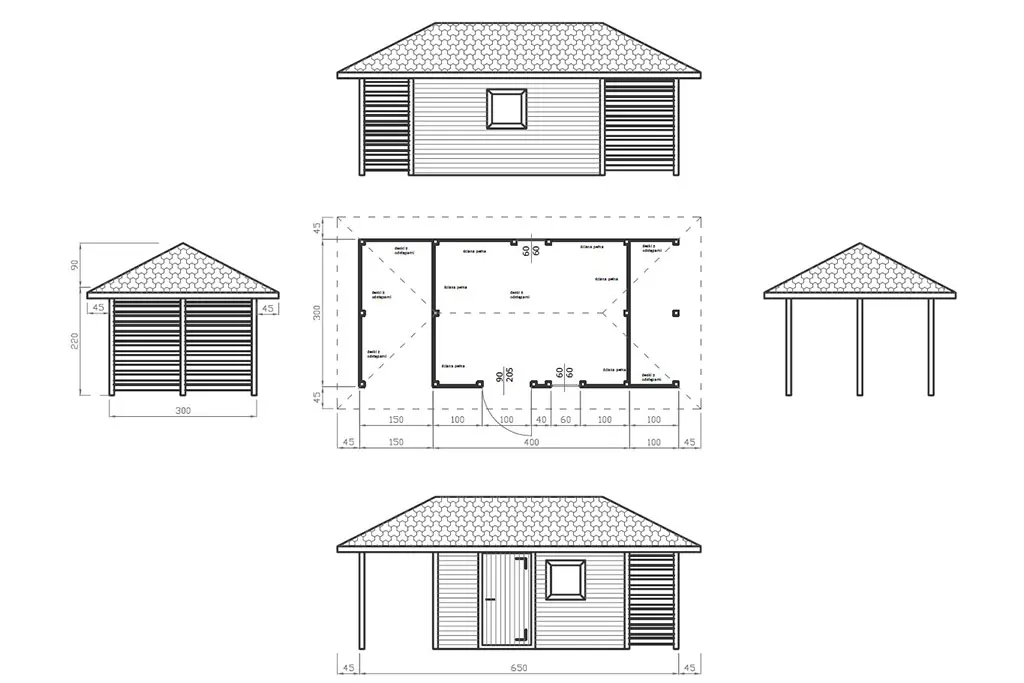 Domek narzędziowy D23 to praktyczna i trwała konstrukcja, idealna do przechowywania narzędzi, drewna opałowego oraz innych sprzętów ogrodowych. Dzięki dużym wymiarom 6,50m x 3,00m, domek oferuje przestronne pomieszczenie gospodarcze oraz dodatkowe zadaszenie na opał, co czyni go wszechstronnym rozwiązaniem dla każdego ogrodu. Istnieje możliwość modyfikacji wymiarów, aby dostosować domek do indywidualnych potrzeb użytkownika.