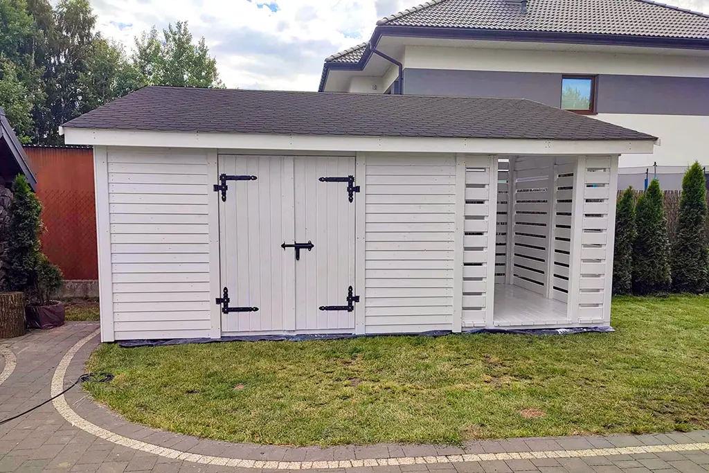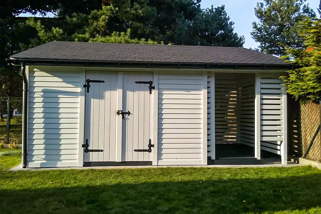 Domek narzędziowy D28 – przestronny domek z zadaszeniem na opał