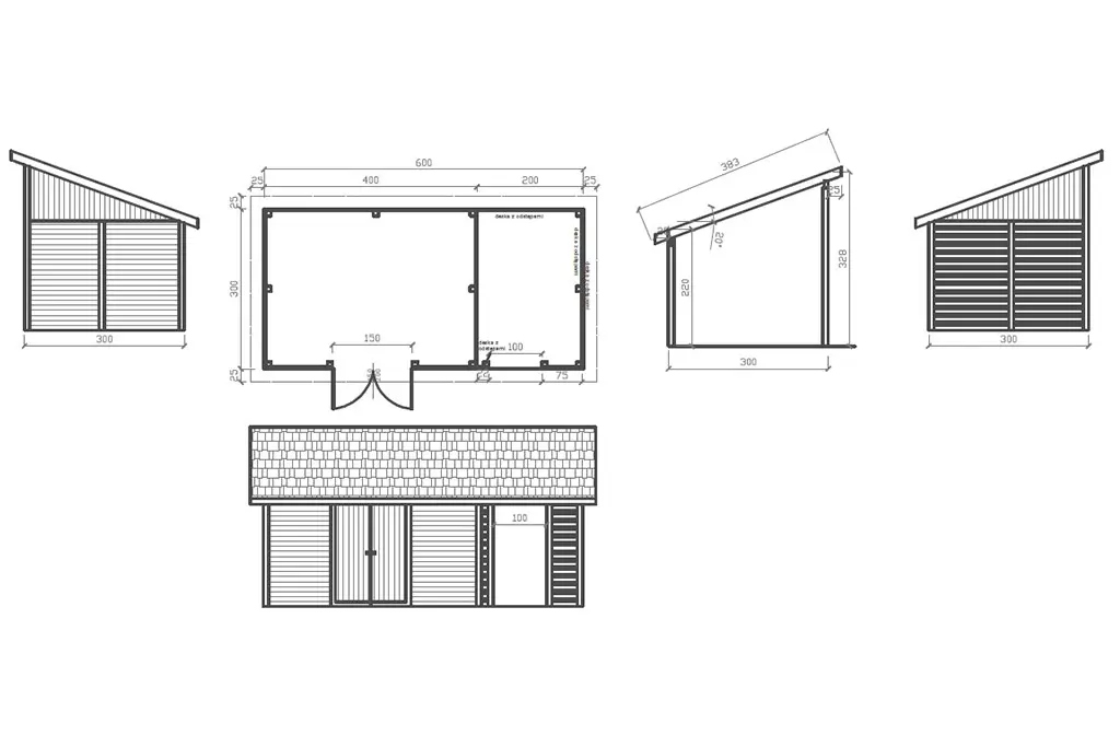 Domek narzędziowy D28 to doskonałe rozwiązanie dla osób szukających funkcjonalnej przestrzeni do przechowywania narzędzi, sprzętu ogrodowego oraz drewna opałowego. Jego przemyślana konstrukcja o wymiarach 3,00m x 6,00m, w tym 4,00m x 3,00m na pomieszczenie gospodarcze i 2,00m x 3,00m na zadaszenie na opał, zapewnia wystarczająco dużo miejsca na wszystkie potrzebne przedmioty. Domek można dowolnie modyfikować, aby lepiej dopasować go do indywidualnych potrzeb.