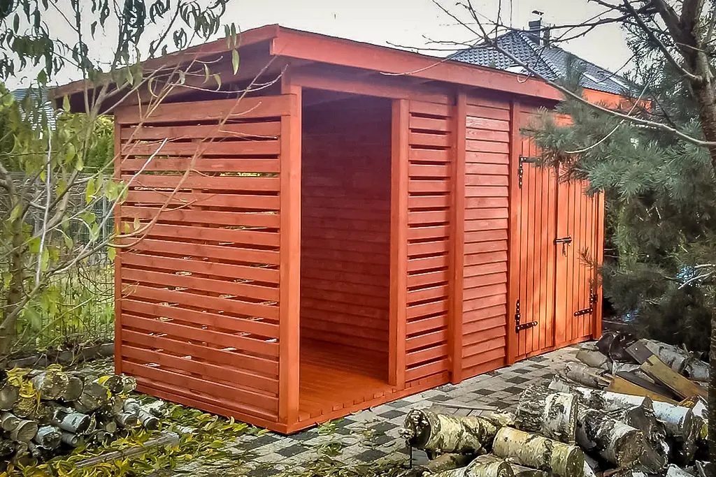 Domek narzędziowy D29 to idealna konstrukcja dla osób poszukujących praktycznego i estetycznego miejsca do przechowywania narzędzi oraz opału. Dzięki wymiarom 2,00m x 4,30m domek zapewnia wystarczającą przestrzeń zarówno na pomieszczenie gospodarcze (2,50m x 2,00m), jak i zadaszone miejsce na opał (1,80m x 2,00m). Istnieje możliwość dostosowania wymiarów domku, co pozwala na pełne dopasowanie go do indywidualnych potrzeb użytkownika.