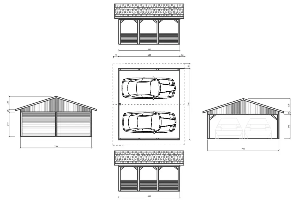 - Dach: konstrukcja drewniana + solidne pokrycie — trwałe zadaszenie zapewniające ochronę przed deszczem, śniegiem i słońcem. [oai_citation:1‡Extradom.pl](https://www.extradom.pl/porady/artykul-garaz-drewniany-jaki-projekt-wybrac-i-jak-samodzielnie-zbudowac-garaz-drewniany?utm_source=chatgpt.com)