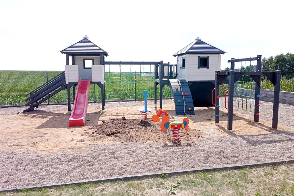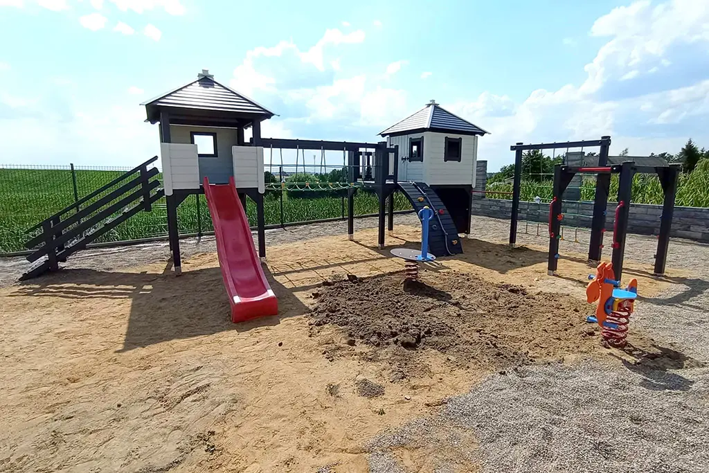 Domki 8,80m x 5,23 m Huśtawka 3,35m x 1,70m