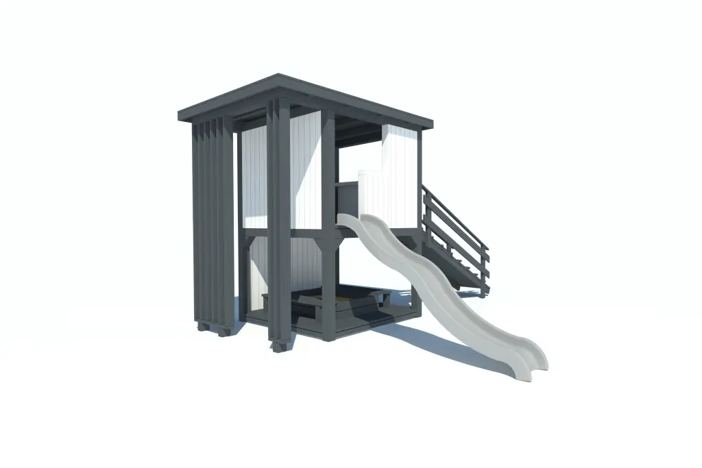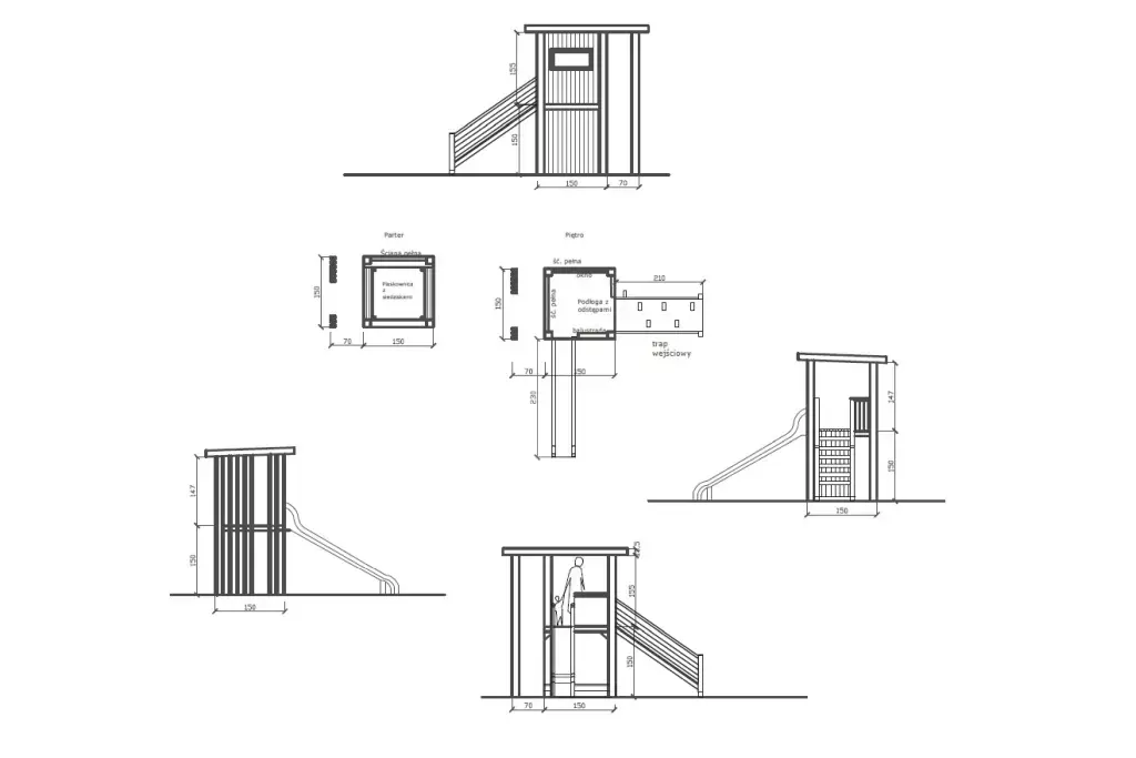 Plac zabaw P3 to idealne rozwiązanie dla rodziców, którzy chcą stworzyć dzieciom bezpieczną i kreatywną przestrzeń do zabawy na świeżym powietrzu. Zestaw o wymiarach 1,50m x 1,50m  z wysuniętym dachem o 75cm, zapewnia dzieciom wiele atrakcji, wspierających rozwój fizyczny i motoryczny. Dzięki solidnej konstrukcji i różnorodnym elementom, plac zabaw P1 stanowi doskonałe miejsce do zabawy dla dzieci w każdym wieku. Istnieje możliwość wykonania zestawu w innych wymiarach, co pozwala na pełne dopasowanie do potrzeb.