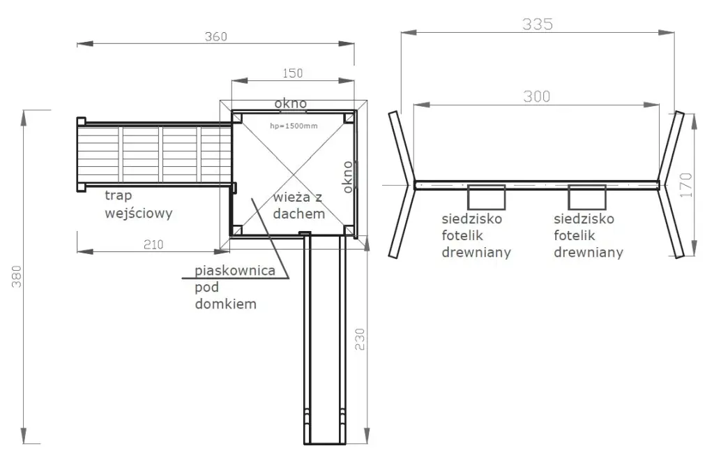 – Piaskownica umieszczona pod domkiem, idealna do kreatywnej zabawy