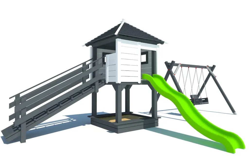Plac zabaw P5 – wszechstronny zestaw do zabawy z domkiem, huśtawką i zjeżdżalnią