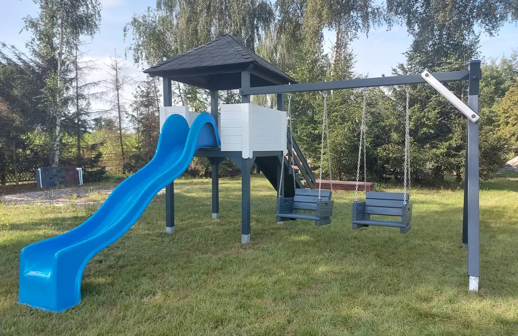 Plac zabaw – wszechstronny zestaw do zabawy z domkiem, huśtawką i zjeżdżalnią
