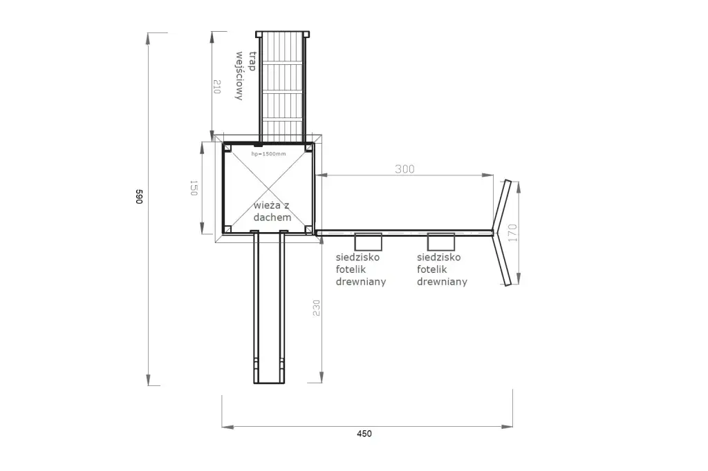 Plac zabaw to idealne rozwiązanie dla rodziców, którzy chcą stworzyć dzieciom bezpieczną i kreatywną przestrzeń do zabawy na świeżym powietrzu. Zestaw o wymiarach 4,50m x 5,90m zapewnia dzieciom wiele atrakcji, wspierających rozwój fizyczny i motoryczny. Dzięki solidnej konstrukcji i różnorodnym elementom, plac zabaw P stanowi doskonałe miejsce do zabawy dla dzieci w każdym wieku. Istnieje możliwość wykonania zestawu w innych wymiarach, co pozwala na pełne dopasowanie do potrzeb.