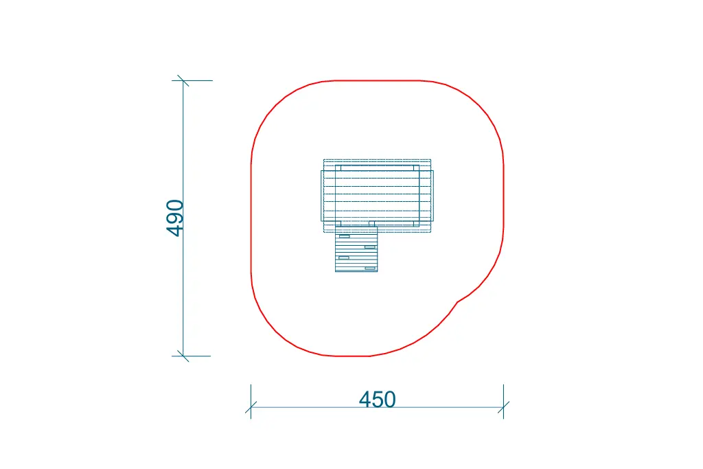 Strefa bezpieczeństwa wokół urządzenia wynosi 4,50 m x 4,90 m, a nawierzchnia musi spełniać wymogi normy PN-EN 1177:2009.