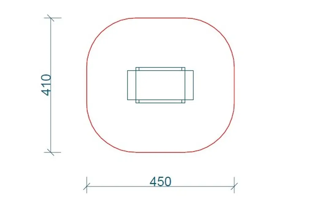 Strefa bezpieczeństwa wokół urządzenia wynosi 4,10 m x 4,50 m, a nawierzchnia musi spełniać wymogi normy PN-EN 1177:2009.