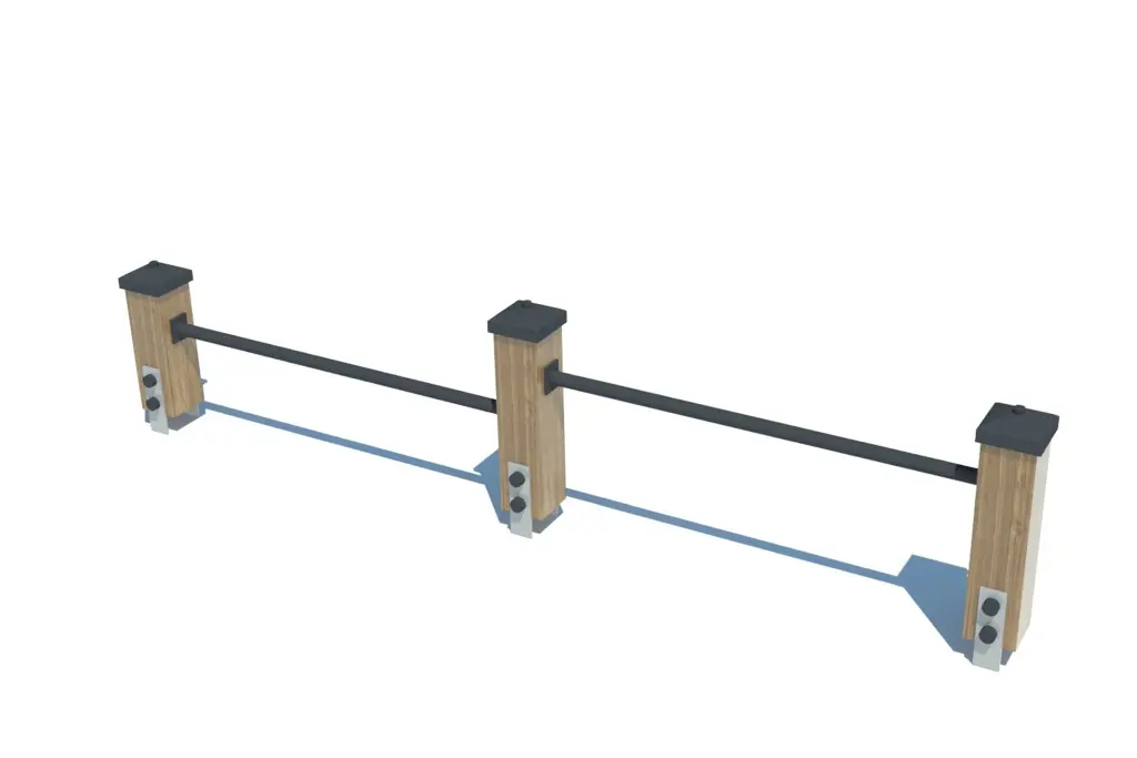 Drewno klejone warstwowo o wymiarach 10 x 10 cm. Słupy te zapewniają stabilność całej konstrukcji, są odporne na uszkodzenia mechaniczne oraz wpływ warunków atmosferycznych.