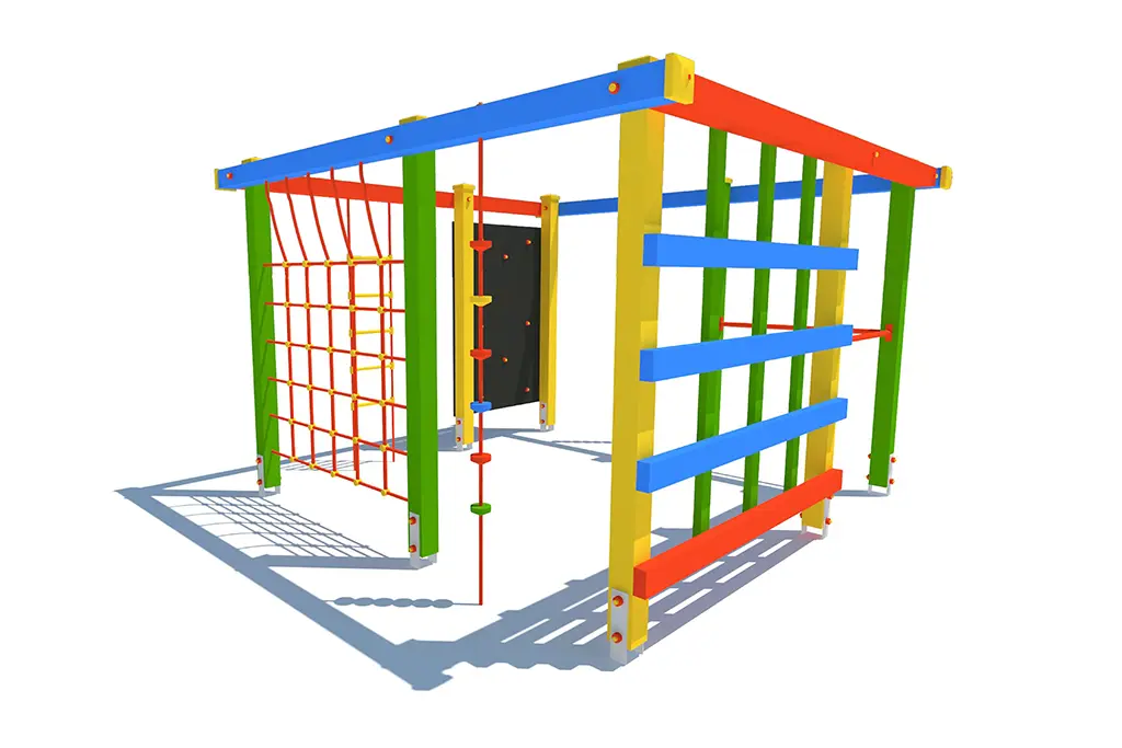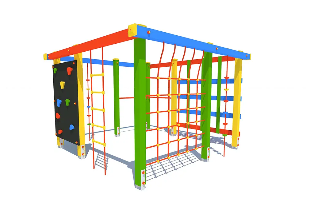Urządzenie sprawnościowe KWADRAT to nowoczesny i funkcjonalny element placu zabaw, stworzony z myślą o dzieciach w wieku od 3 do 12 lat. Jego konstrukcja zachęca do aktywności fizycznej, wspiera rozwój koordynacji ruchowej oraz buduje siłę i pewność siebie. KWADRAT oferuje dużą powierzchnię do zabawy –3,20 m szerokości, 3,20 m długości i 2,25 m wysokości, z wyznaczoną strefą bezpieczeństwa o wymiarach 7,10 x 7,10 m. Maksymalna wysokość swobodnego upadku wynosi 2,25 m.