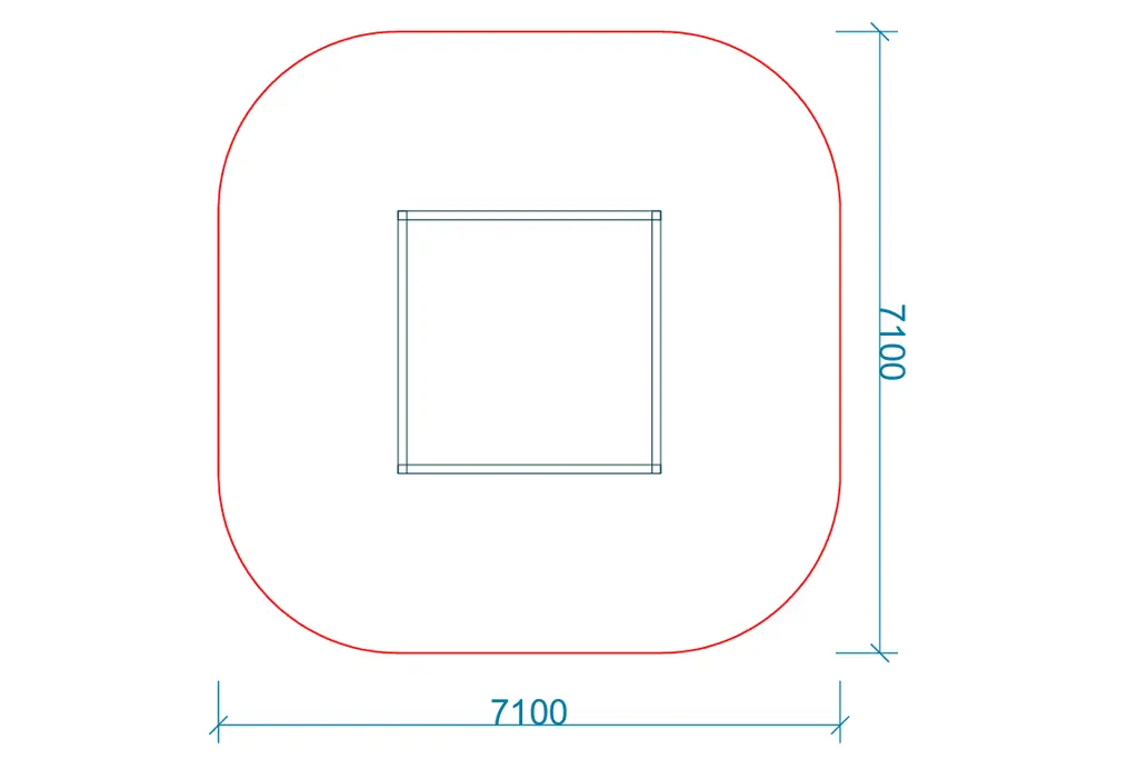 strefa bezpieczeństwa: 7,10 x 7,10 m